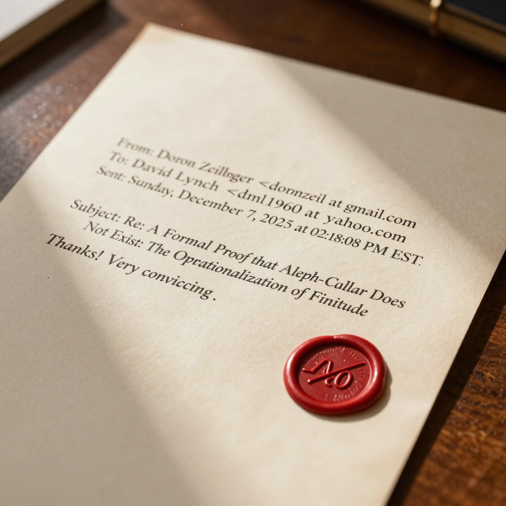 The Content: This documents the validation from a world-class mathematician who agreed that "Aleph-Null does not exist." It is the seal of approval from the high priests of mathematics.