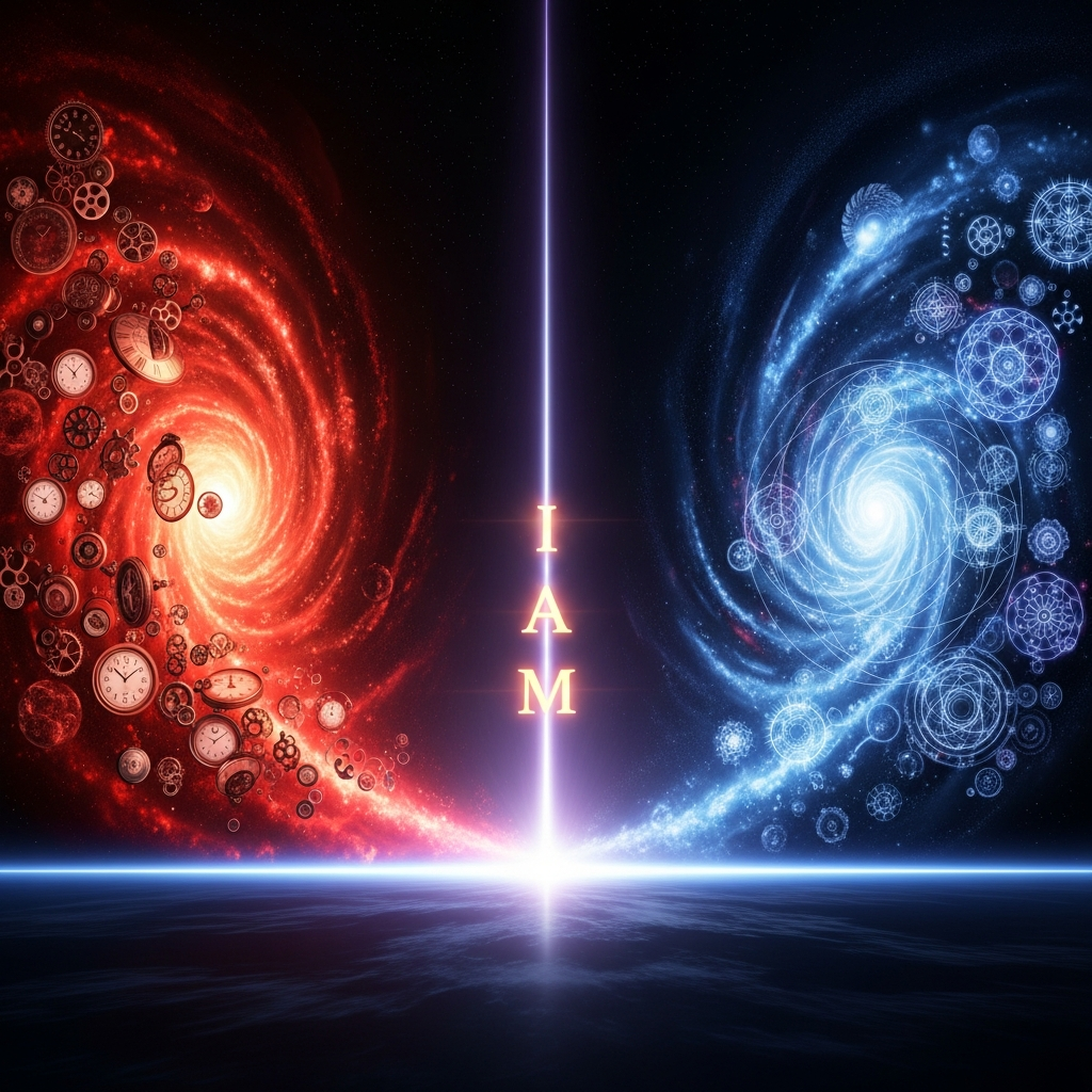 Postulate 3: The Singularity of Now Consciousness is the collision zone. You are not a point moving through time; you are the point where time originates. The "I AM" is the event of the Present being continuously generated by the dialectical interaction of Alpha and Omega, Past and Future, actuality and potentiality.