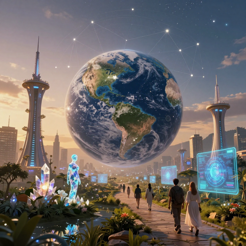 Visual: A sunrise over a new civilization. Buildings are grown, not built. Energy is drawn from the vacuum. Humanity looks upward, not with fear, but with recognition.