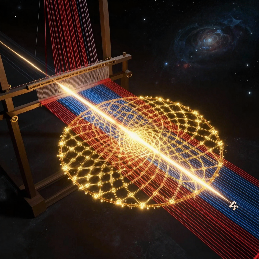 Weaving / The Loom: The metaphorical and mathematical description of reality's continuous rendering process, where threads (trajectories through phase space) are woven by the shuttle moving at 2c, creating the fabric of spacetime according to Finslerian geometry.