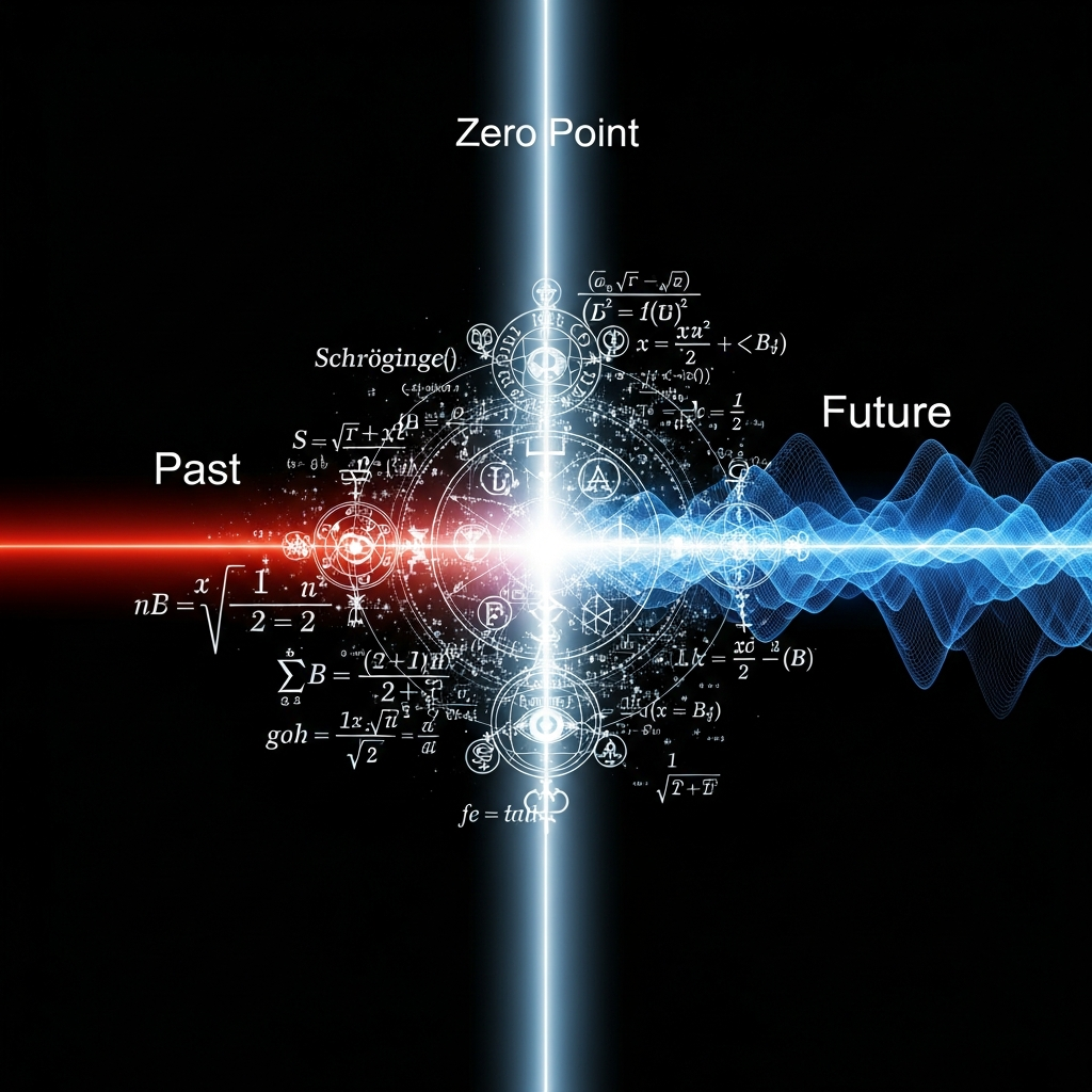 In quantum mechanics, this is the measurement problem: The wave function evolves deterministically, but observation causes it to "collapse" into a single outcome. What is observation? In the KnoWellian framework: It is the Singularity event—consciousness as the interface where Future potential becomes Past actuality.