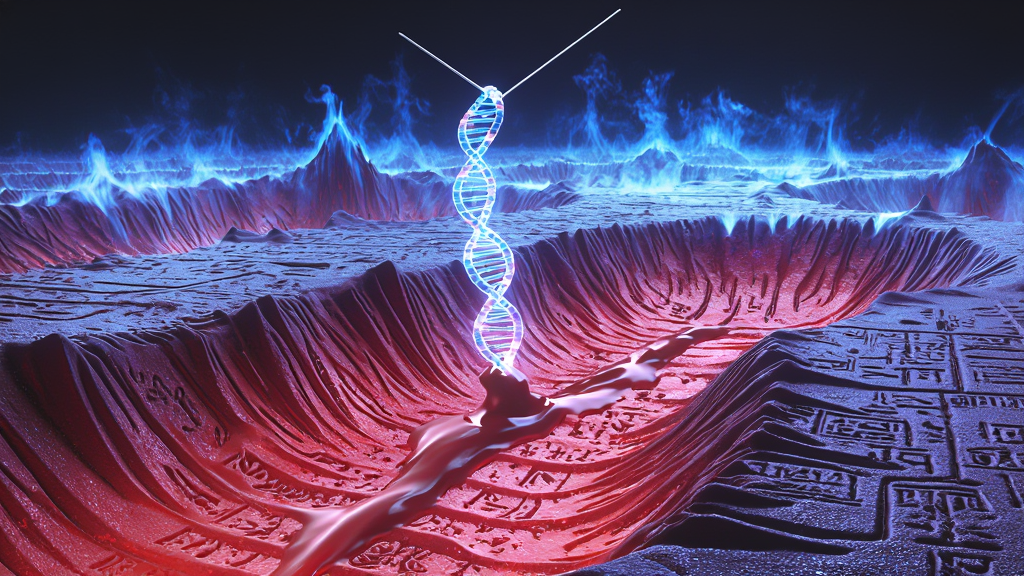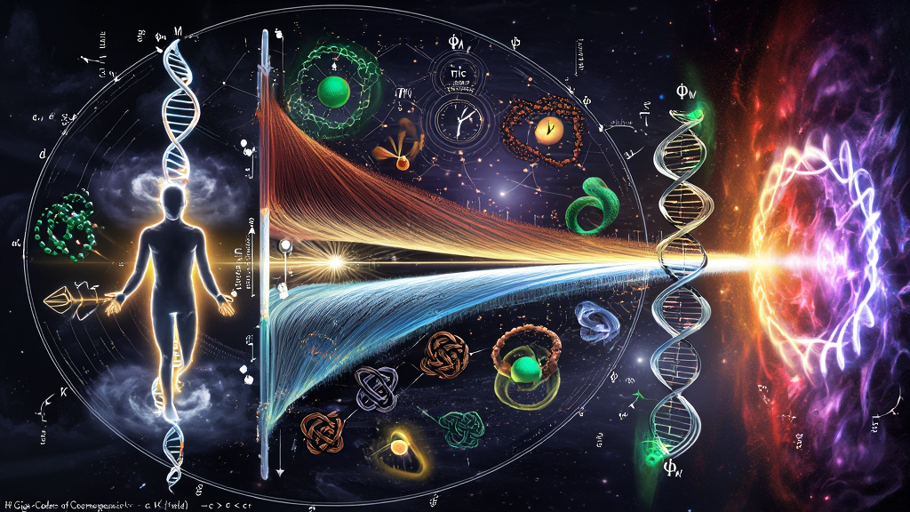 Floating nearby is a luminous, hyper-detailed DNA double-helix, pulsing with a rhythmic 34-bp "Silence" (The DYS425 Null marker); this gap acts as a dark-light resonator, a genetic antenna catching the "Celtic Knock" from the Apeiron. The surrounding air is a Steady-State Plasma, filled with floating 1×1×1 Event-Points and stable (3,2) Torus Knot solitons that exhibit the 3:2 harmonic ratio of the Perfect Resonance.